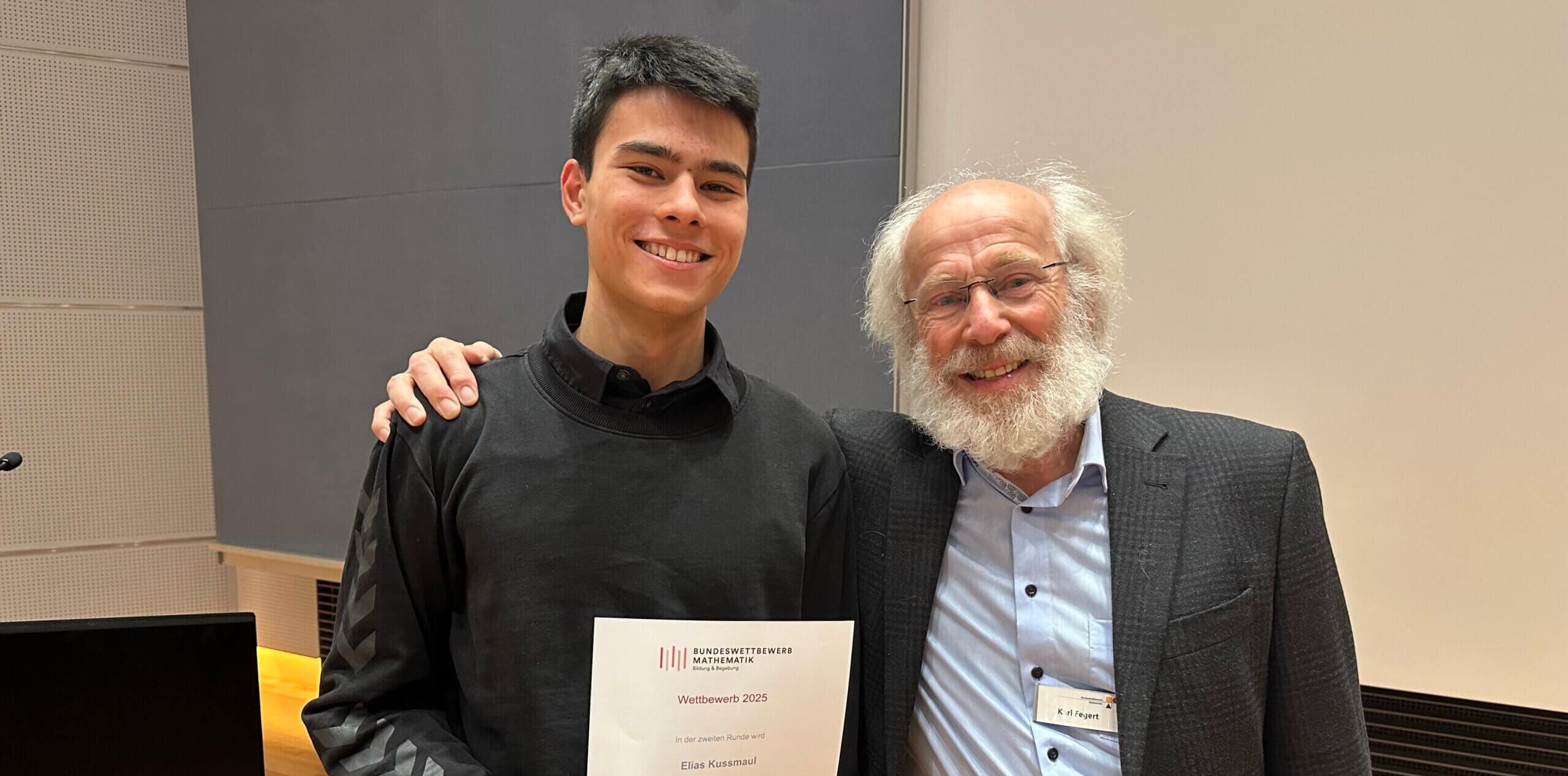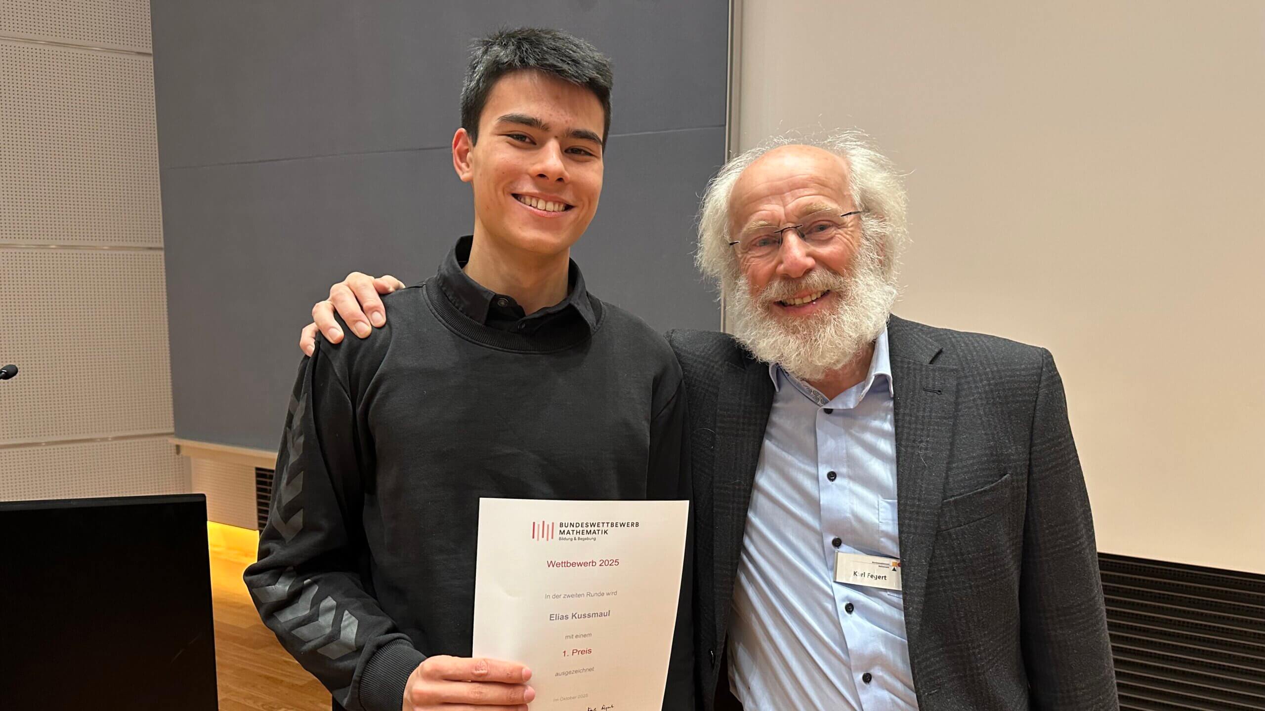 Elias Kußmaul mit dem Vorsitzenden der Korrekturkomission bei der Preisverleihung