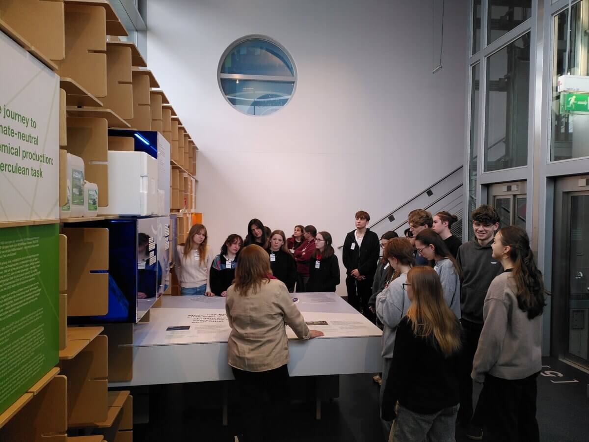 Das Besichtigungsprogramm war äußerst vielfältig und abwechslungsreich. Zunächst erhielten wir im eigens eingerichteten Besucherzentrum spannende Einblicke in die Arbeit und Geschichte der BASF und setzten uns mit den unterschiedlichen Kunststoffen sowie deren Reaktionen auseinander. Dabei konnten wir viele Inhalte vertiefen, die auch für das anstehende Abitur von großer Bedeutung sind.