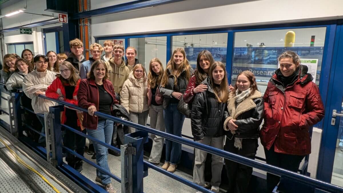Direkt nach der letzten Chemieklausur vor dem Abitur begab sich der Chemie-Leistungskurs der Jahrgangsstufe 2 am 3. Februar 2026 auf eine Reise in die Weiten der Chemiewelt. Ziel unserer Exkursion war das Karlsruher Institut für Technologie (KIT) in Karlsruhe. Dort wurden wir herzlich von Timo Weckerle empfangen, einem ehemaligen Chemie-LK-Schüler des AEG. Er entschied sich für ein Studium des Chemieingenieurwesens und promoviert derzeit am KIT im Projekt GRAVITHELIUM, das Grundlagenforschung für das Einstein-Teleskop liefert.