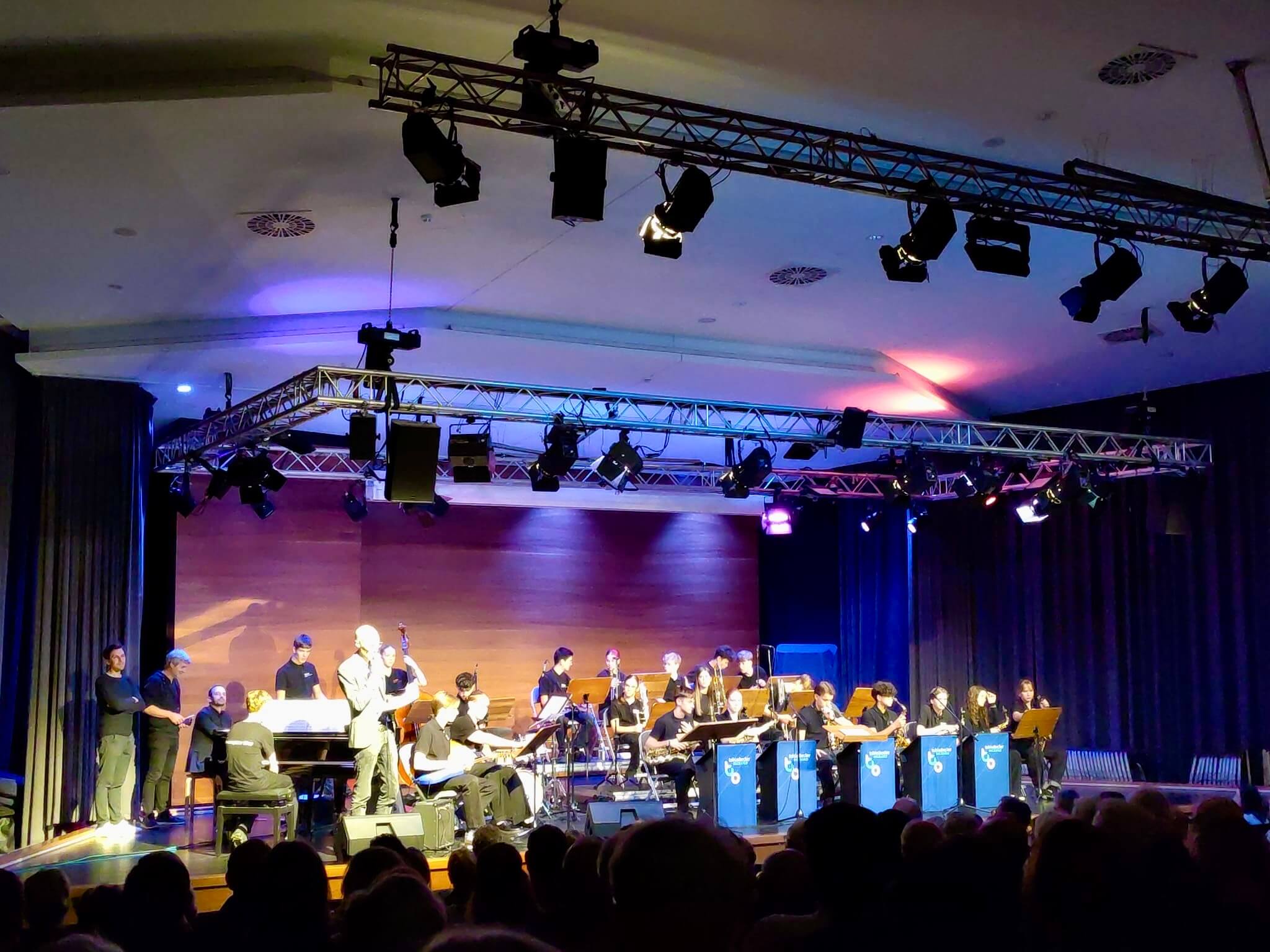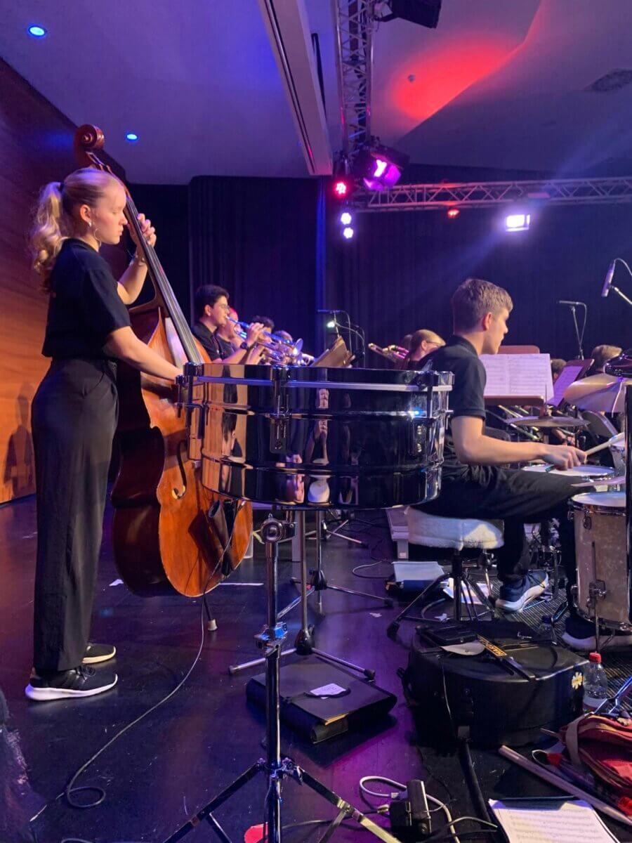 Den schwungvollen Auftakt machte dabei die AEG-Bigband, deren junge Musikerinnen und Musiker mit Spielfreude, Rhythmusgefühl und beeindruckendem Können das Publikum – darunter viele Ehemalige des AEG – sofort begeisterten. Dabei übernahm Tobias Becker selbst die Leitung – ein besonderes Erlebnis und zugleich ein letztes Coaching, bevor die Bigband vor den Herbstferien zu ihrer Bandreise nach Chicago aufbrach.