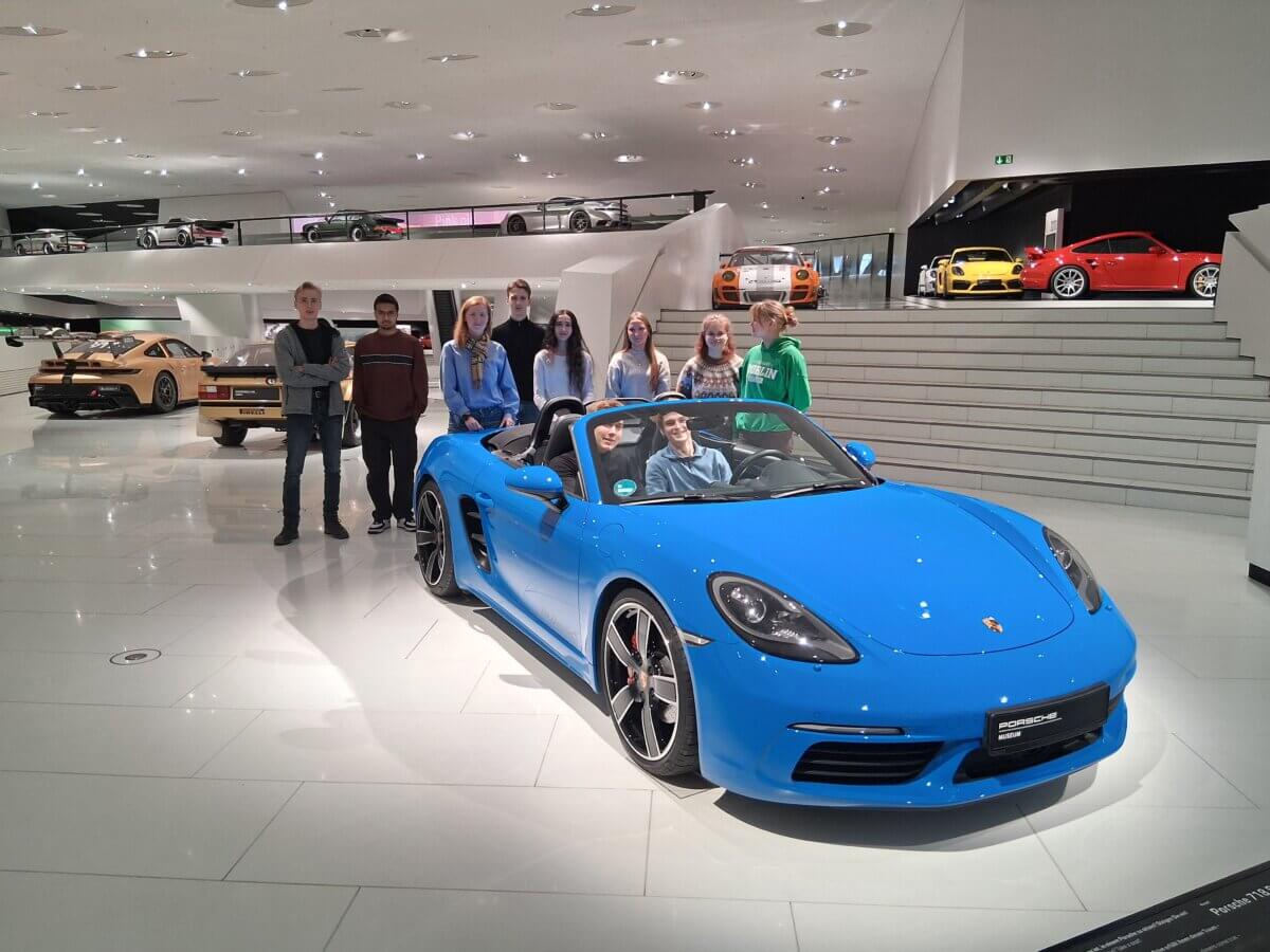 Am Vormittag besuchten wir die Porsche AG in Stuttgart. Geplant war ursprünglich eine Werksbesichtigung, die jedoch aufgrund einer Bahnverspätung nicht wie vorgesehen stattfinden konnte. Als besondere Alternative erhielten wir stattdessen eine private Führung durch das Porsche-Museum. Diese war umso außergewöhnlicher, da das Museum an diesem Tag regulär geschlossen war. Während der Führung bekamen wir einen umfassenden Überblick über die Unternehmensgeschichte, die Entwicklung legendärer Fahrzeugmodelle sowie die Innovationskraft der Marke Porsche.