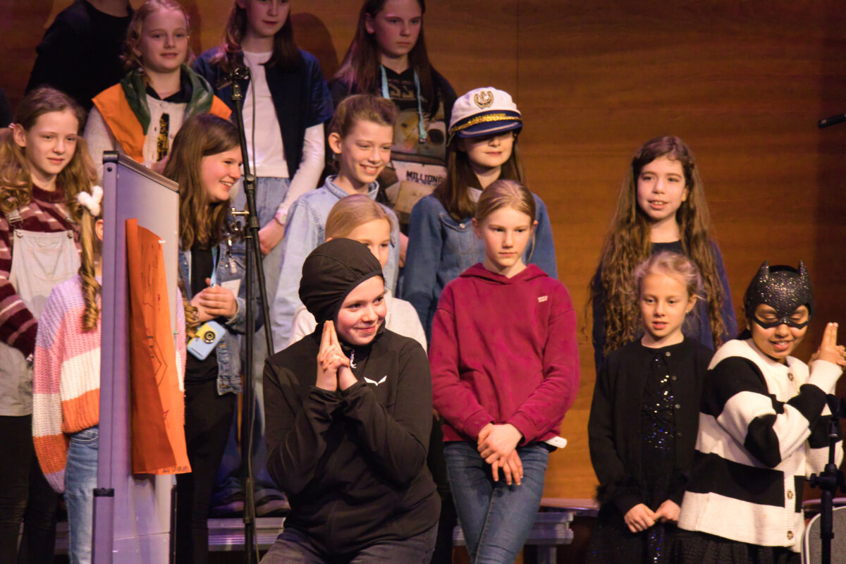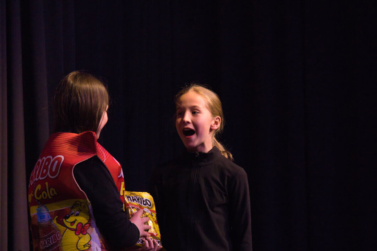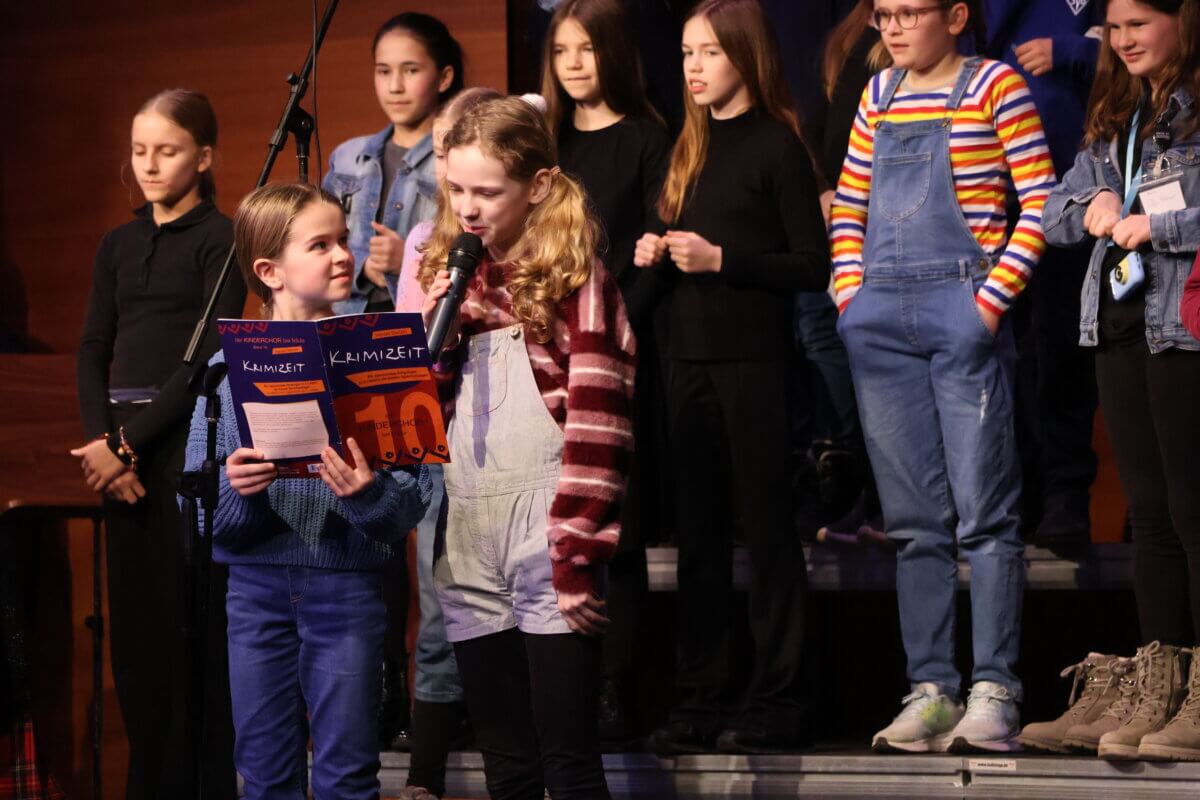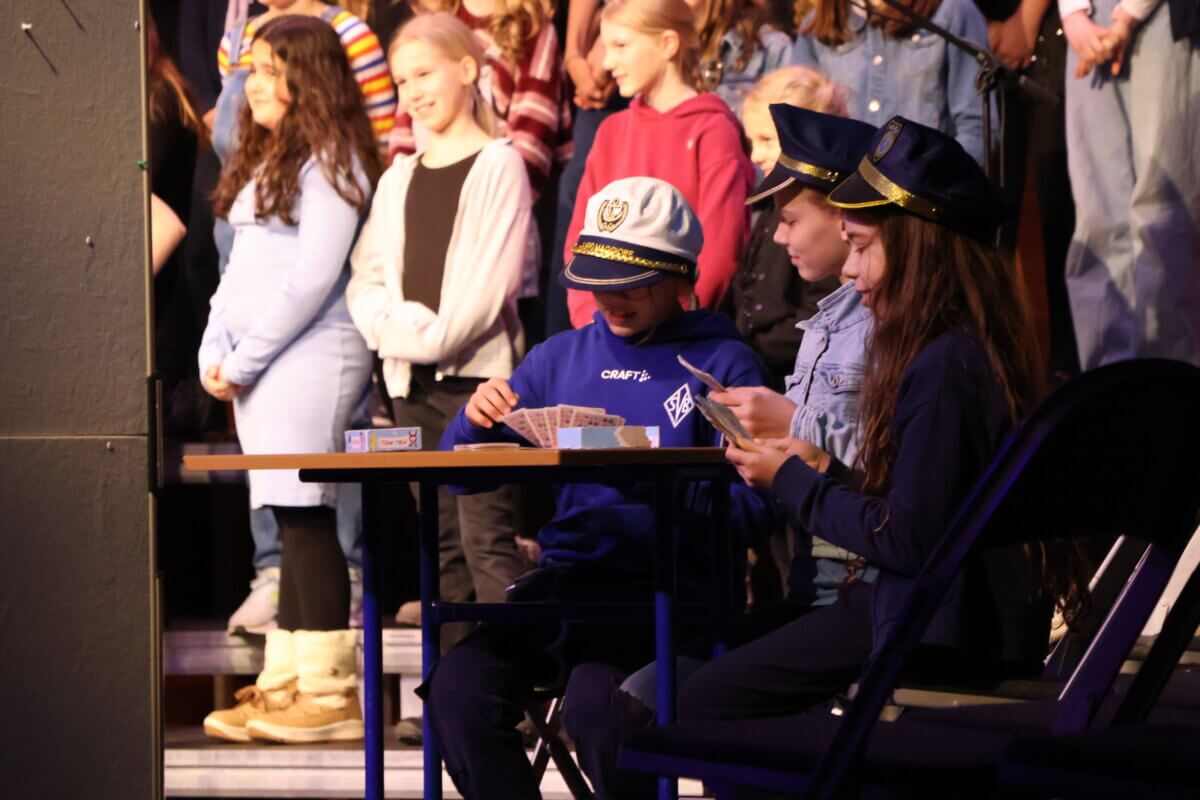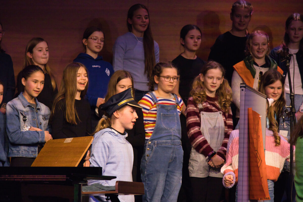 Im Anschluss entführte der Unterstufenchor – unter der Leitung von Oliver Dermann – die Zuhörerinnen und Zuhörer in eine spannende Kriminalgeschichte. In einer gelungenen Mischung aus musikalischen Passagen und szenischem Spiel entwickelte sich eine Geschichte voller überraschender Wendungen. Mit viel Ausdruck, schauspielerischem Talent und stimmlicher Vielfalt schufen die Schülerinnen und Schüler eine Atmosphäre zwischen Spannung und augenzwinkerndem Humor. Das Publikum lauschte gebannt – und honorierte die gelungene Darbietung mit begeistertem Applaus.