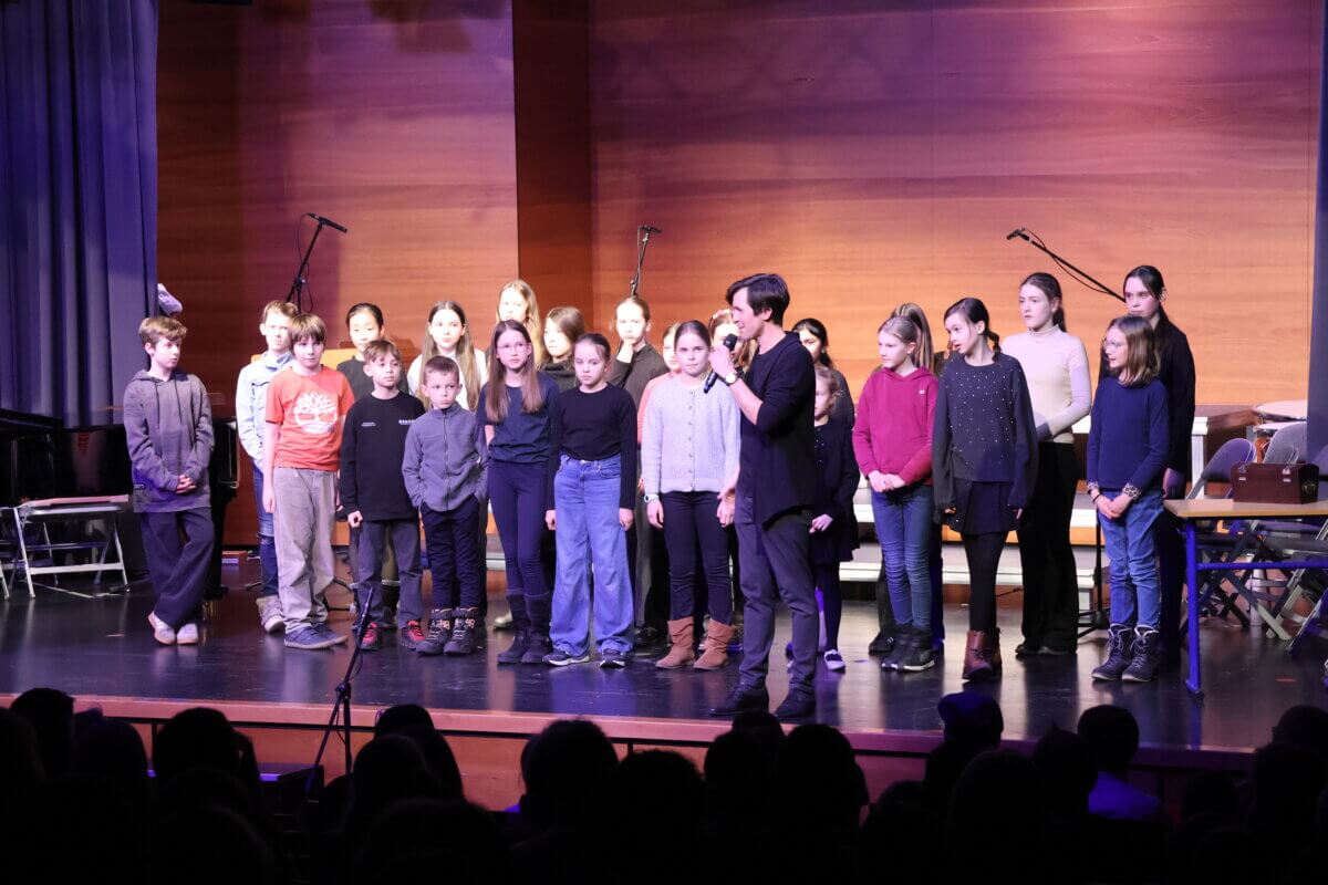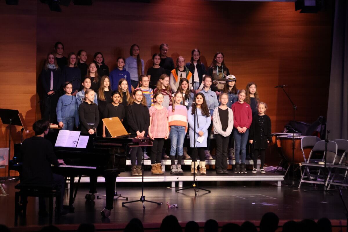 Den schwungvollen Auftakt gestalteten die Gesangsklassen 5 und 6 mit dem Welthit „Mamma Mia“ von ABBA. Mit großer Begeisterung, klaren Stimmen und ansteckender Bühnenpräsenz eröffneten die jungen Sängerinnen und Sänger den musikalischen Abend.