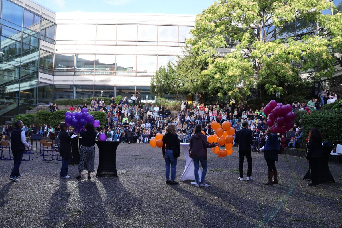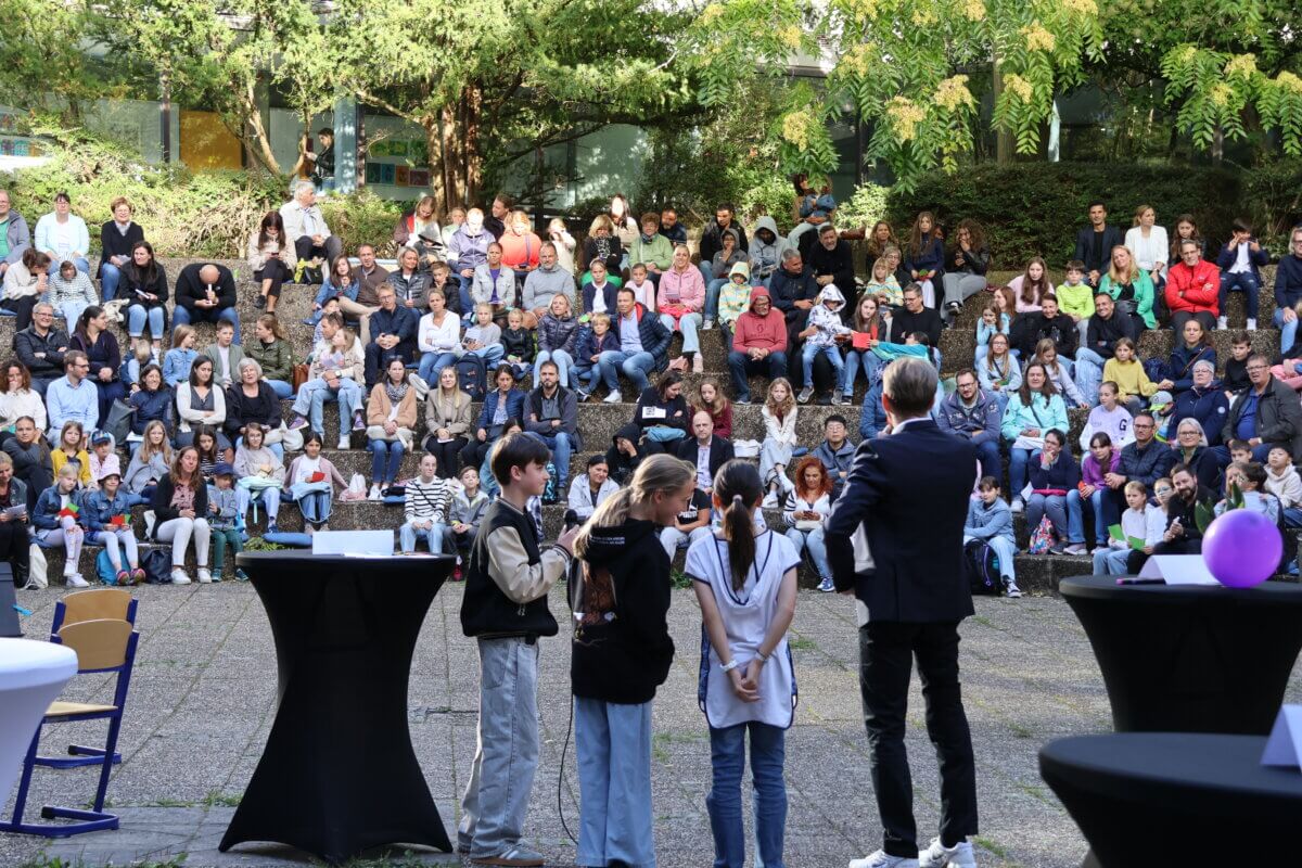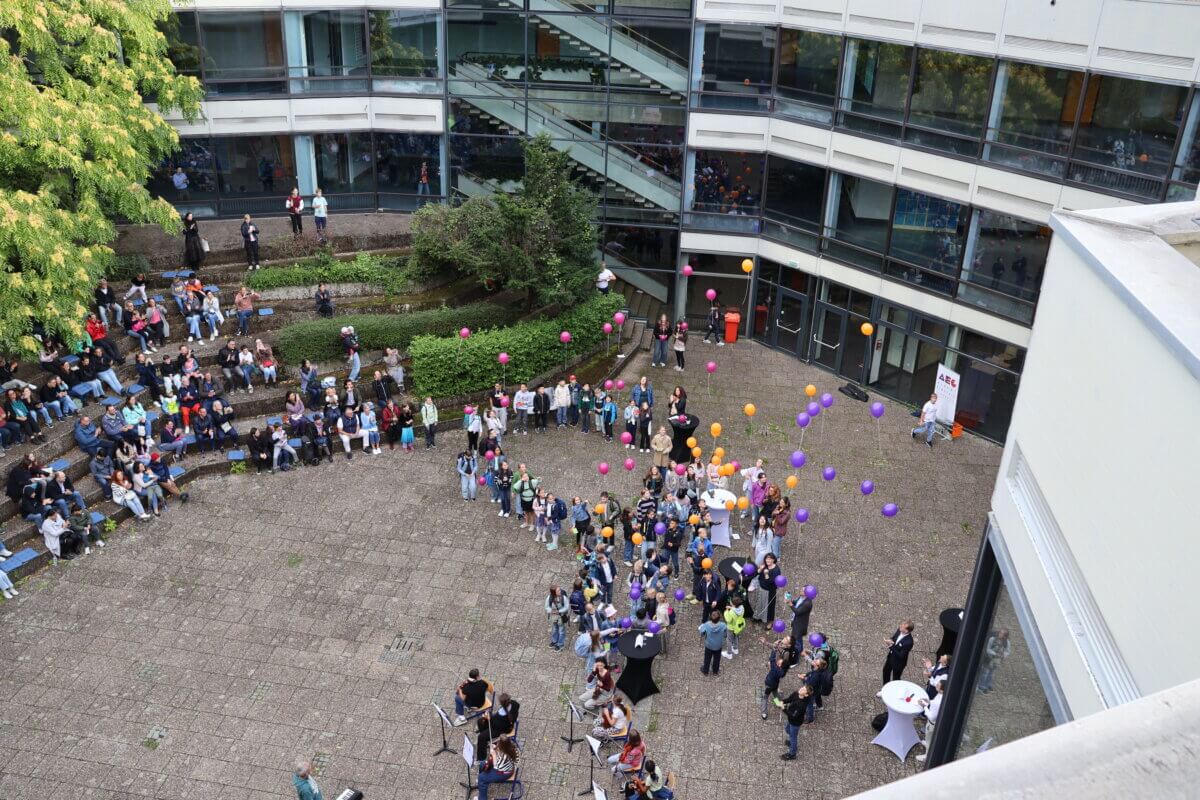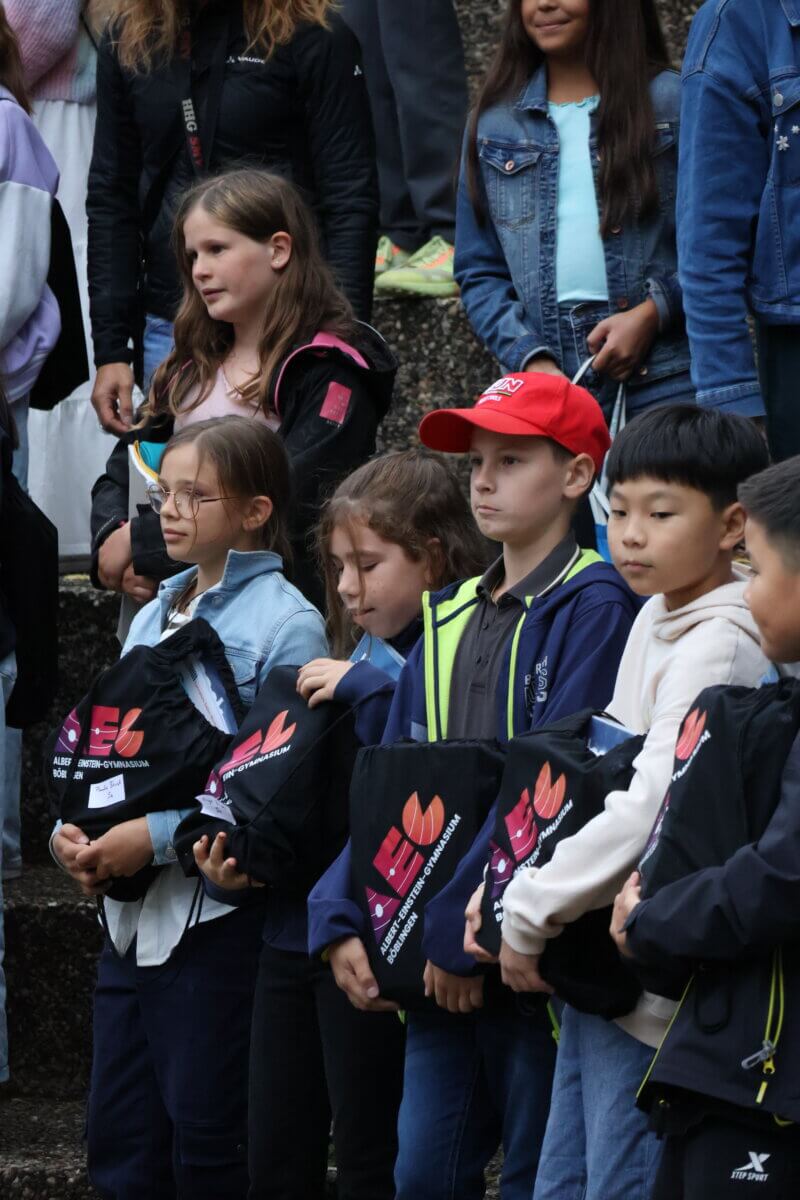 Zum Abschluss ließen die neuen Mitglieder unserer Schulgemeinschaft gemeinsam mit ihren Klassenlehrkräften bunte Luftballons in den AEG-Farben in den Böblinger Himmel steigen – ein schönes Symbol für den neuen Lebensabschnitt, der nun vor ihnen liegt.