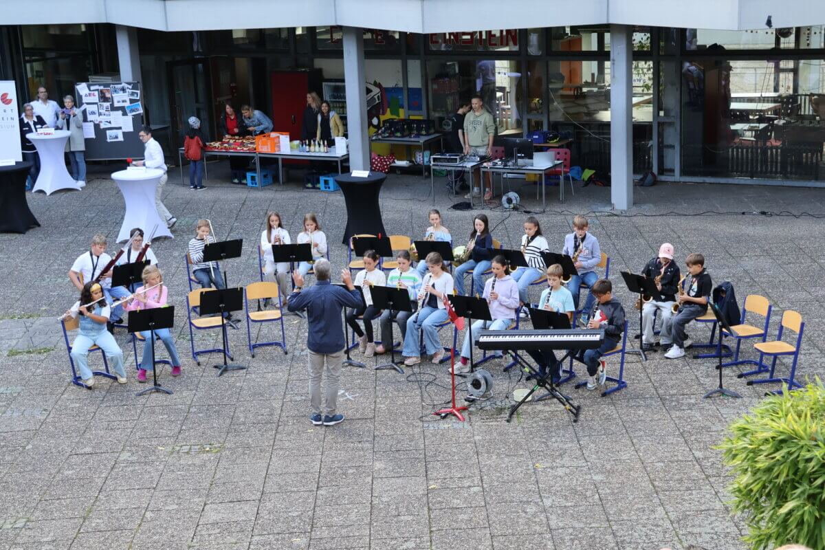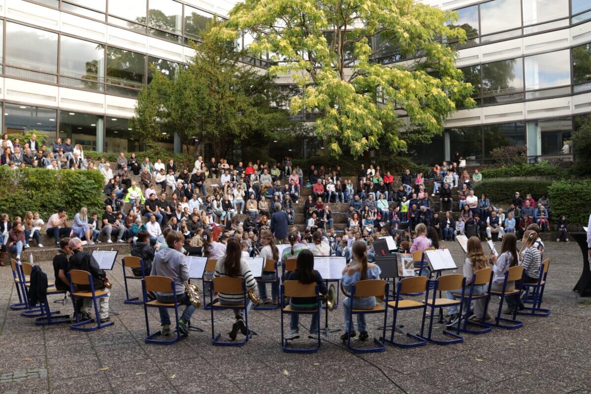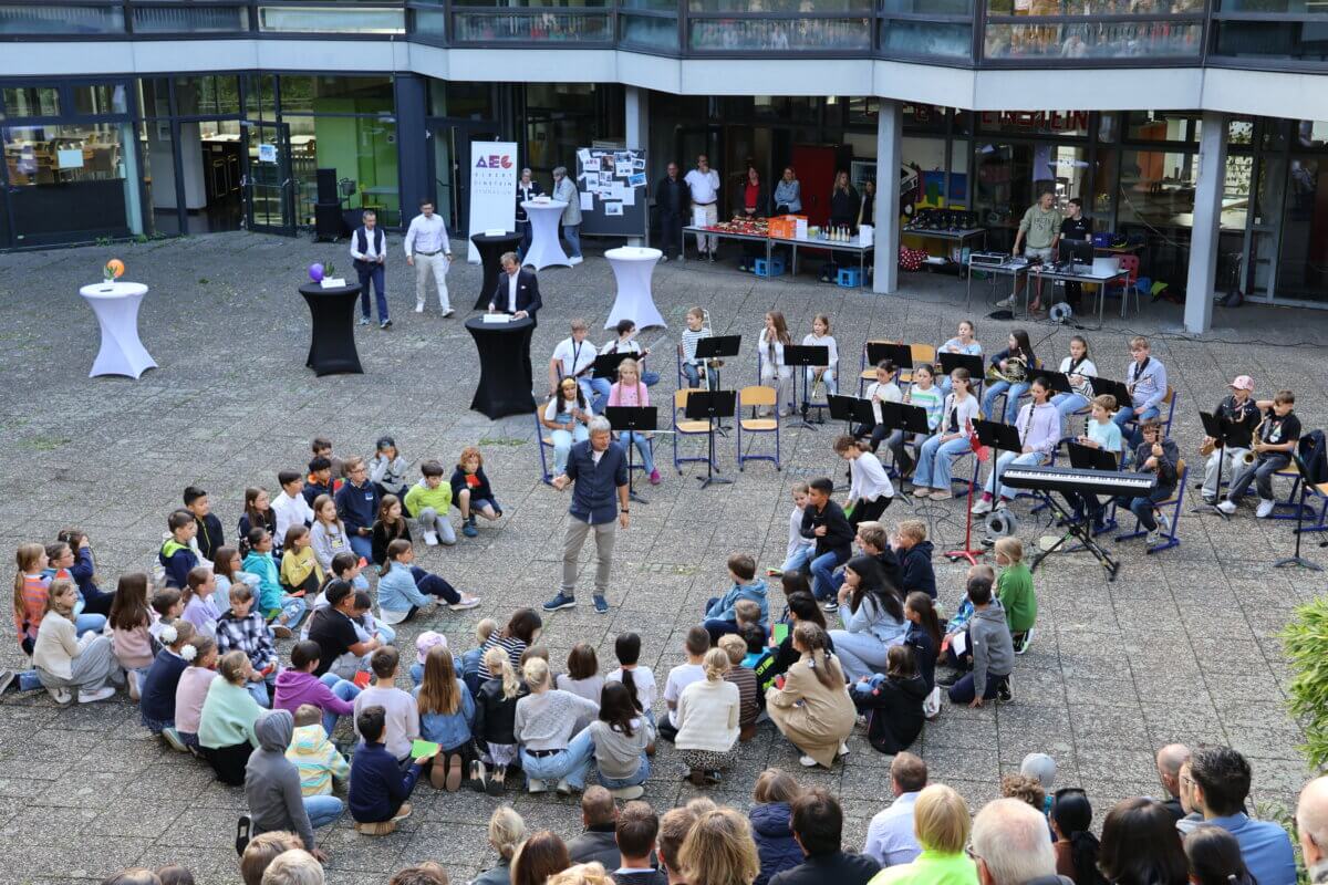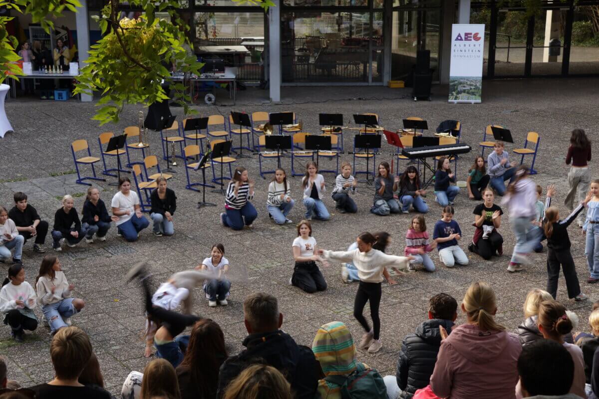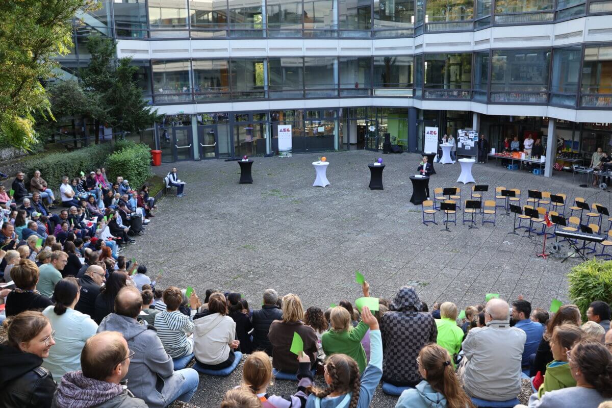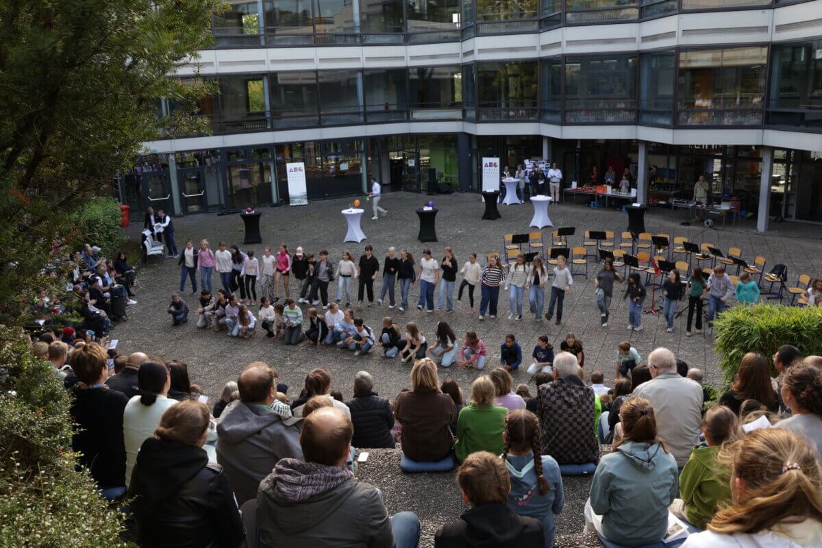 Seit gestern ist das AEG um ganz viel Vorfreude und Leben reicher – denn gestern wurden unseren neuen Fünftklässler offiziell am AEG eingeschult. Bei der Einschulungsfeier, die bei Sonnenschein im Innenhof stattfand, wurden die neuen Fünftklässlerinnen und Fünftklässler am AEG von unserem kommissarischen Schulleiter Herrn Schwarz herzlich willkommen geheißen und konnten, nach einer kleinen Feier mit tollen musikalischen Beiträgen, ihre Klassenlehrkräfte kennenlernen und zum ersten Mal ihre neuen Klassenzimmer erkunden.