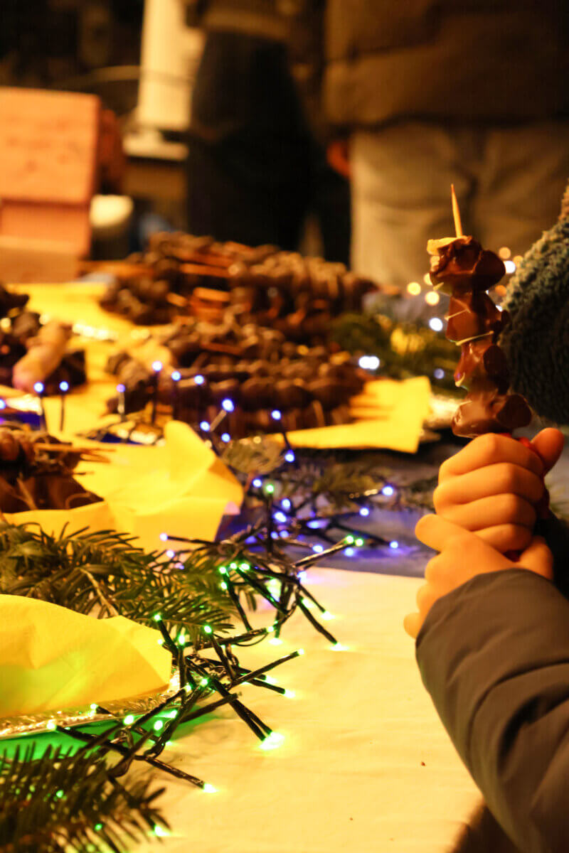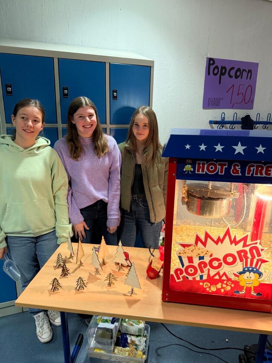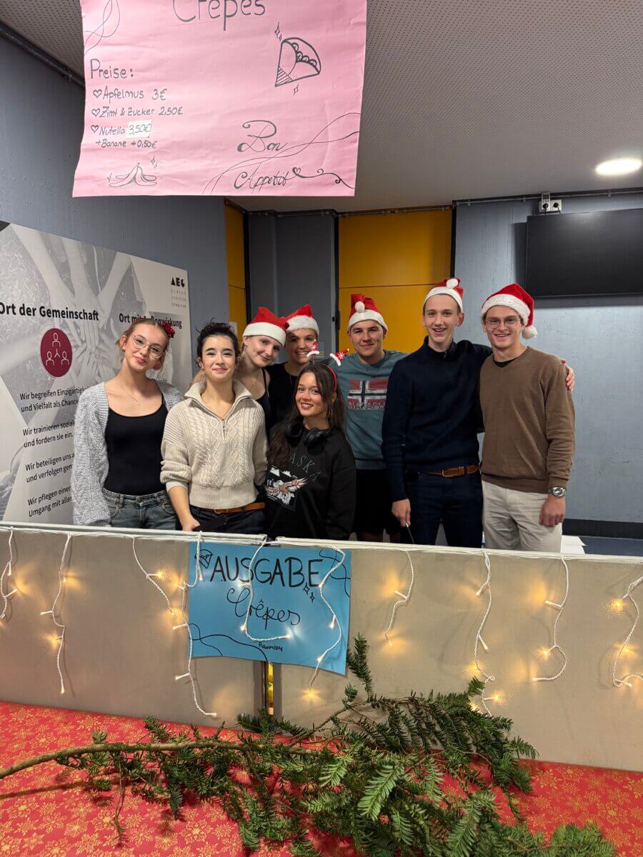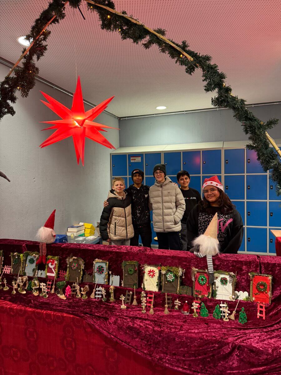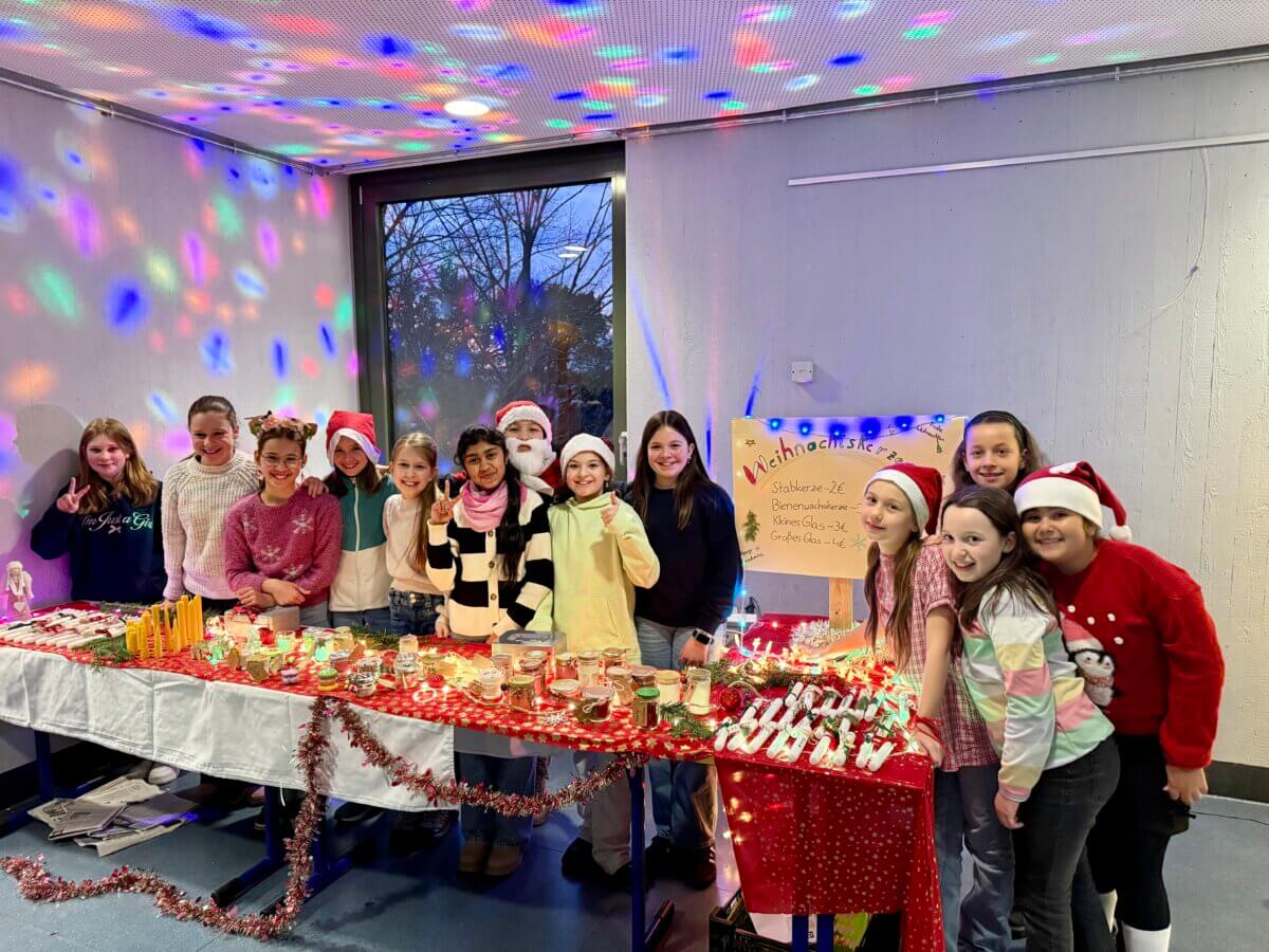 Zwischen funkelnden Lichtern und geschmückten Ständen präsentierten die Klassen ein breites Angebot an kulinarischen Köstlichkeiten. Von frisch zubereiteten Waffeln und Hotdogs bis hin zu aromatischem Chili – wahlweise con oder sin carne –, schokolierten Früchten, Punsch und Glühwein oder gebrannten Mandeln war für jeden Geschmack etwas dabei. Der verlockende Duft zog durch die Flure und lud zum gemütlichen Verweilen ein.