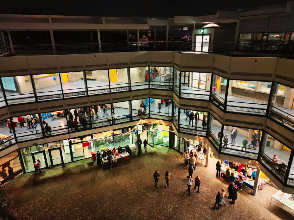 Der alljährlichen AEG-Weihnachtsmarkt verwandelte das Schulhaus und den Innenhof in ein stimmungsvolles Winterwunderland. Schon beim Eintreffen wurden die Besucherinnen und Besucher von liebevoll gestalteten Schneeflocken-Dekorationen empfangen, die dem Gebäude ein festliches, beinahe märchenhaftes Flair verliehen.